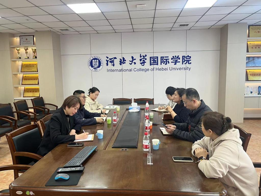 副院长高雪升对河北师范大学汇华学院一行来访表示热烈欢迎。会上,高雪升就国际学院办学历程、ISEC项目建设情况、学生就业、国(境)内外升学以及国际交流情况等方面进行了介绍,闵杰就汇华学院总体情况进行了介绍,双方共同聚焦高质量国际化人才培养实践,开展了进一步的经验交流。