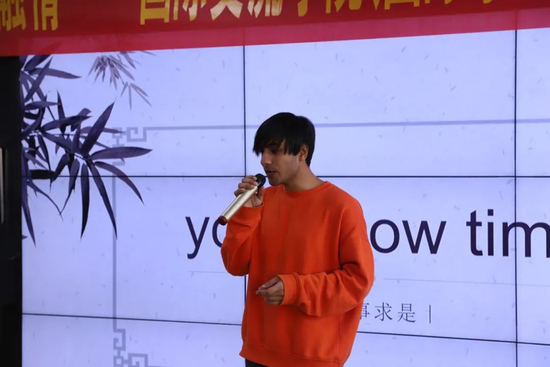 最后,留学生朋友们也为大家带来了精彩的节目,岩阳、赵氏李、闭文南三位留学生先后表演了京剧《梨花颂》、相声、歌曲《冰雨》等节目。他们用自己的声音,表达了对中国的热爱。