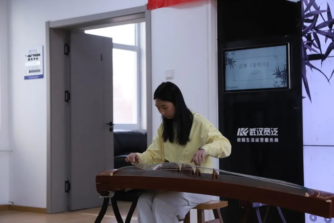 随后由国际学院艺术教育中心器乐社的邢嘉芮同学表演古筝弹奏《寄明月》。婉约的古筝,悠扬的琴声,感受中华民族传统乐器的魅力,共同徜徉在音乐的海洋。