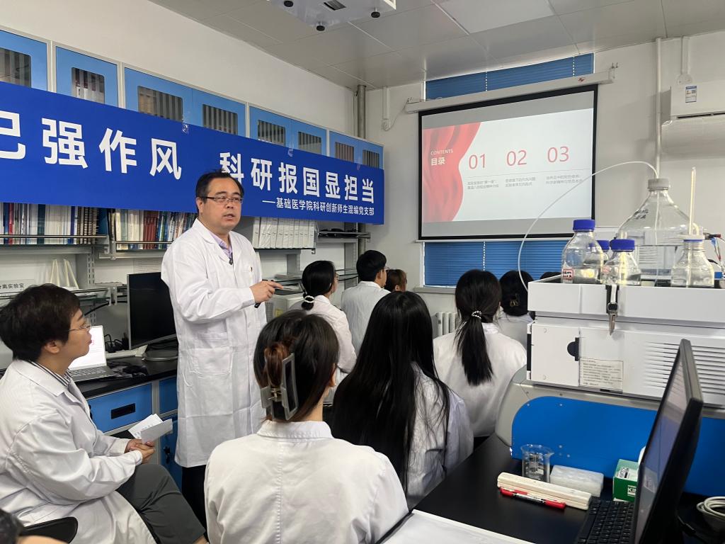 为深入贯彻中央八项规定精神,将全面从严治党要求延伸至科研一线,基础医学院科研创新师生混编党支部于4月23日在分离科学实验室开展了一堂“实验室里的党课”。活动以“弘扬科学家精神,严守科研纪律”为主题,聚焦于实验室环境中如何深入践行中央八项规定精神,探讨科研骨干及青年研究生群体所肩负的时代担当。党课由支部书记周国强主讲。支部师生党员、积极分子,学院本科生党支部负责人等20余人参加了活动。