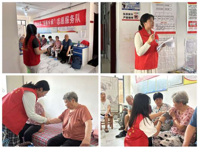在子安养老院,实践队员耐心细致地讲解老年人防跌倒技巧、夏季预防中暑知识、老年人常见疾病保健,以及当地医院就医流程与医保报销政策,为现场老人测量了血压和血糖。随后,队员们前往子位村,为村民发放科普宣传手册,对青少年及其监护人开展了健康宣讲。