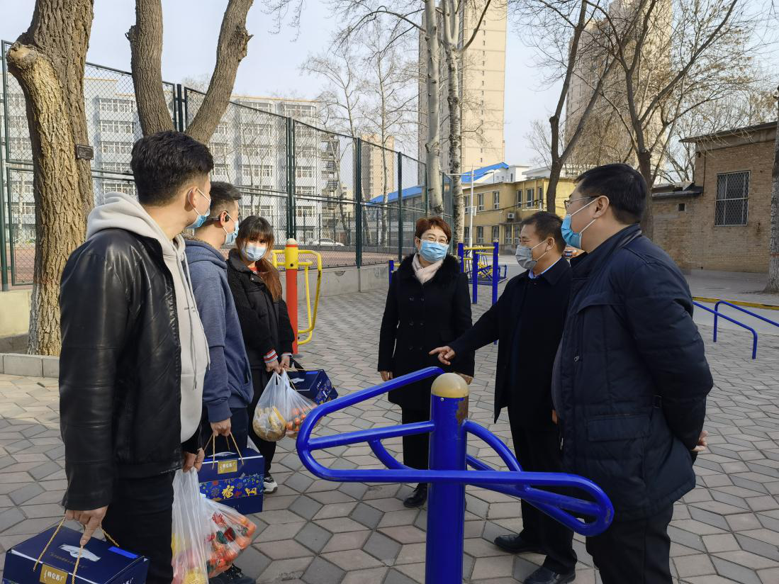 2021年初,我省新冠肺炎疫情防控形势严峻,受疫情影响,我院三名新疆籍学生寒假期间滞留学校。2月8日,时值春节前夕,学院党委书记张洪义、院长王红杰、处级辅导员高术刚、办公室主任李丽红、辅导员喻倩一行到校看望留校学生,为他们送去牛奶、水果等慰问品。