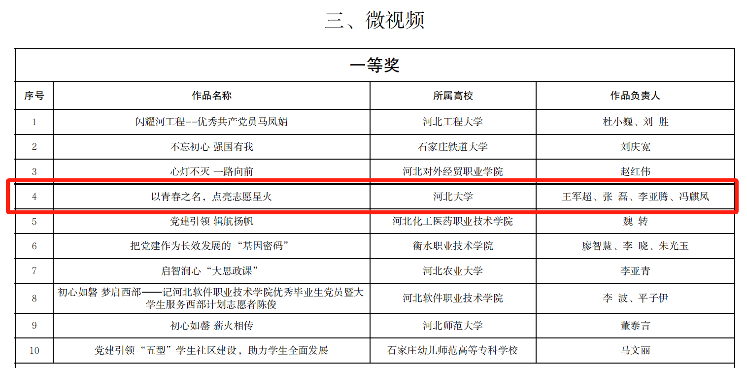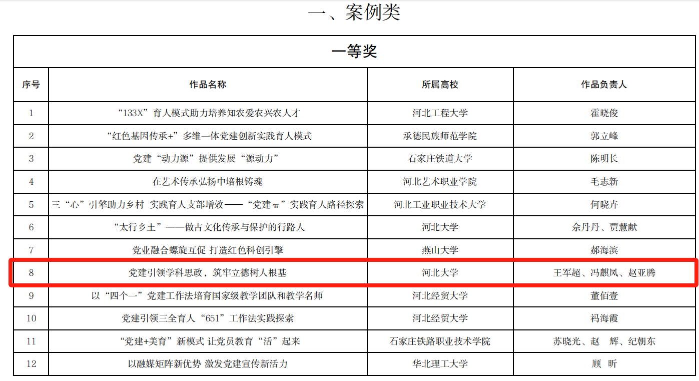 为深入推进实施高校党建领航工程,充分彰显新时代我省高校党建工作成果,省委教育工委组织开展了2024年高校党建主题作品征集活动。基础医学院积极响应号召,经评委专家认真组织评审,我院推报的案例类作品《党建引领学科思政,筑牢立德树人根基》和微视频类作品《以青春之名,点亮志愿星火》均荣获一等奖!