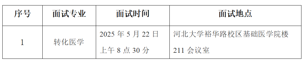 (一)本次面试采用线下方式进行,详细内容请参阅《河北大学基础医学院2025年“申请-考核制”博士研究生招生综合考核面试实施细则》。