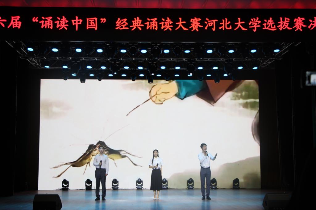 6月13日下午,由河北大学教务处、学生处、校团委共同主办,河北大学新闻传播学院、河北大学有声语言传播研究中心承办的第六届“诵读中国”经典诵读大赛河北大学选拔赛决赛,在河北大学邯郸音乐厅举办。经评审团评审,第一名《青衣》、第二名《钢铁》、第三名《阿房宫赋》获得一等奖;《就是那一只蟋蟀》《播火者》《阵地上的婚礼》等七部作品获得二等奖,《采蒲台的苇》《芦花荡》《枸杞花开》等十部作品获得三等奖。