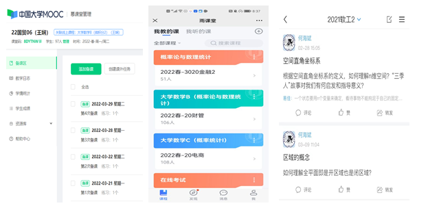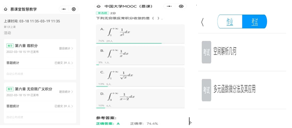 为保障线上教学不受网络等原因影响,使授课过程达到最佳效果,并充分结合课程特点、授课需要,大数部各教研室通过不断实践摸索,总结出了适合课程组需要的授课模式。如:微积分课程组采用自有慕课+直播混合式教学模式、高等数学教研组采用自建课程+直播混合式教学模式、概率论与数理统计课程组采用雨课堂+QQ群直播混合教学模式,线性代数课程组采用学习通+内嵌腾讯会议混合教学模式。