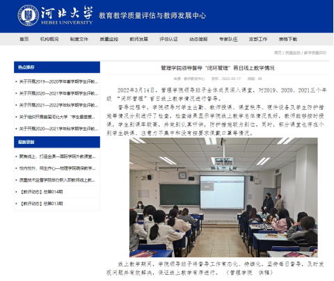 自三月中旬学校进行闭环管理至今,管理学院全体师生遵循学校相关规定,齐心协力,“疫”路同行,保证了学院教育教学工作的顺利进行。闭环管理伊始,学院全体领导每天坚持深入课堂进行督导,及时发现和处理相关问题,这一做法得到了相关部门和兄弟学院的认可与赞同。