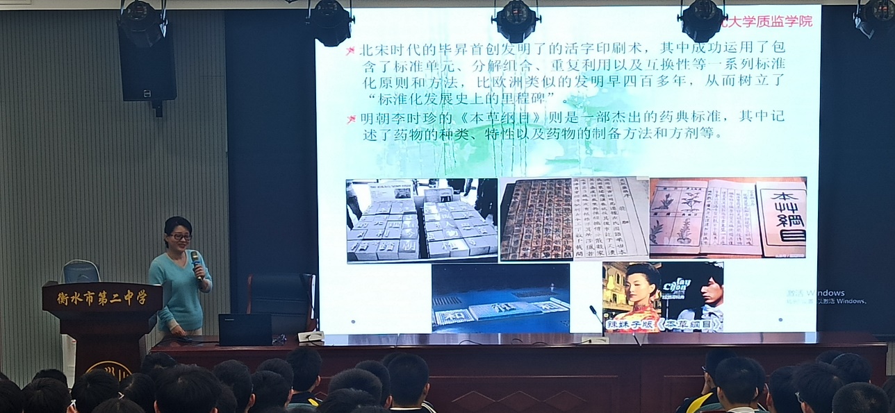 质量技术监督学院刘铮颢副教授为两校的学生做了题为《标准与标准化》的科普讲座。宣讲内容包括标准和标准化的发展史、基础知识及生活中的标准和标准化、发展趋势等相关知识。同学们对报告内容非常感兴趣,现场气氛热烈,学生积极互动,本次讲座取得圆满成功。