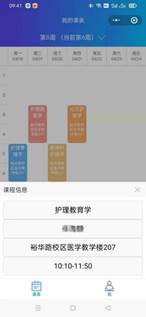 1.【课表】可查看学生当前周的课程表,点击所上课程可查看课程的详细信息,包括课程名称、教师、上课的教室、上课时间。