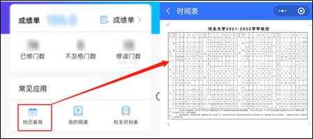 点击常见应用里的校历查询,进入时间表页面查看本学年的校历。