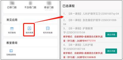 进入网课的课程列表页面,可查看教师填报的授课信息,包括课程教学模式、联系方式等,点击课后评教按钮可对课程进行评价。