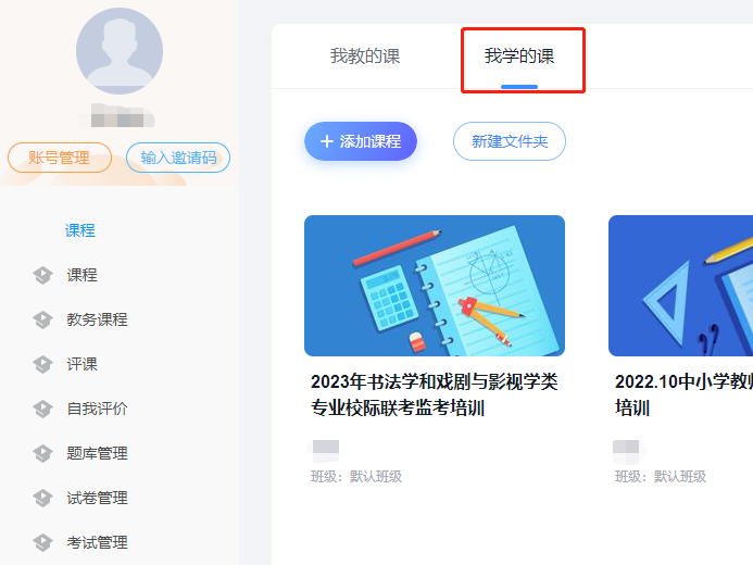 ③登录后点击左侧列表中的“课程”-“我学的课”-“2023年书法学和戏剧与影视学类专业校际联考监考培训”(或“2023年戏剧与影视学类专业校际联考监考培训”)-“章节”-“监考培训”,即可开始学习。