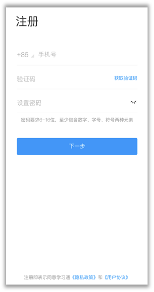 ②注册登录:进入APP后,在登录页面点击“新用户注册”,或者“手机号码快捷登录”,进行手机号注册登录。(如已注册并绑定工资号,请忽略此步骤)