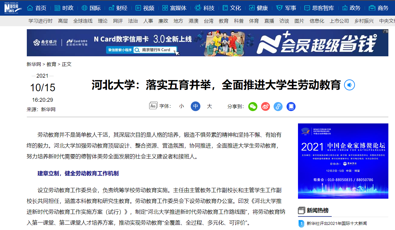 [新华网]河北大学:落实五育并举,全面推进大学生劳动教育
