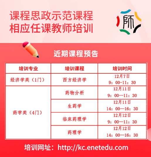 本次培训采用线上方式,无培训费用。参训教师根据本人所在专业和所授课程,进行网络注册和相应培训报名(网址为:http://kc.enetedu.com)。本专业类培训结束次日起开始回放,回放时间为3天。