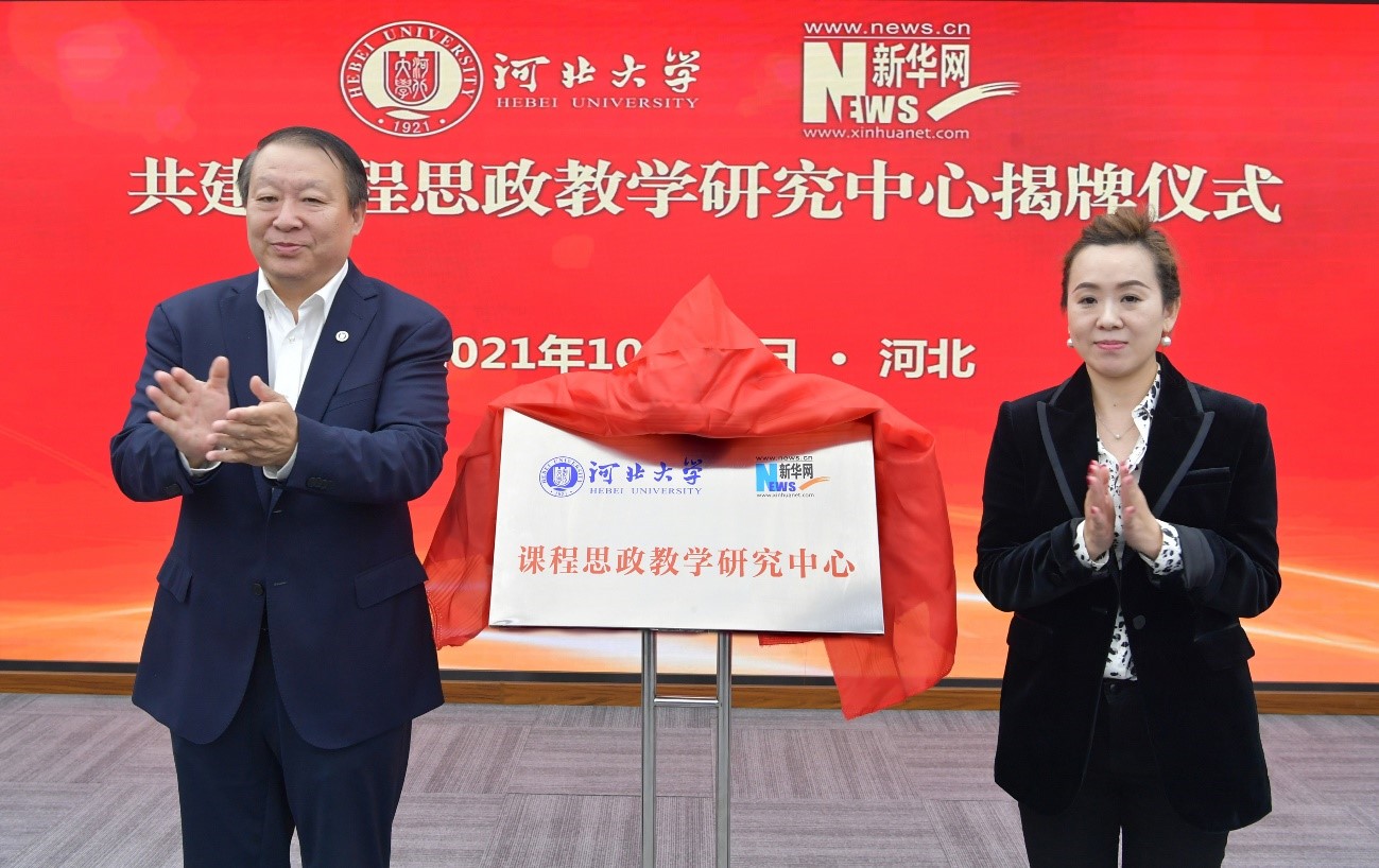 杨立海和徐晶为“河北大学-新华网课程思政教学研究中心”揭牌