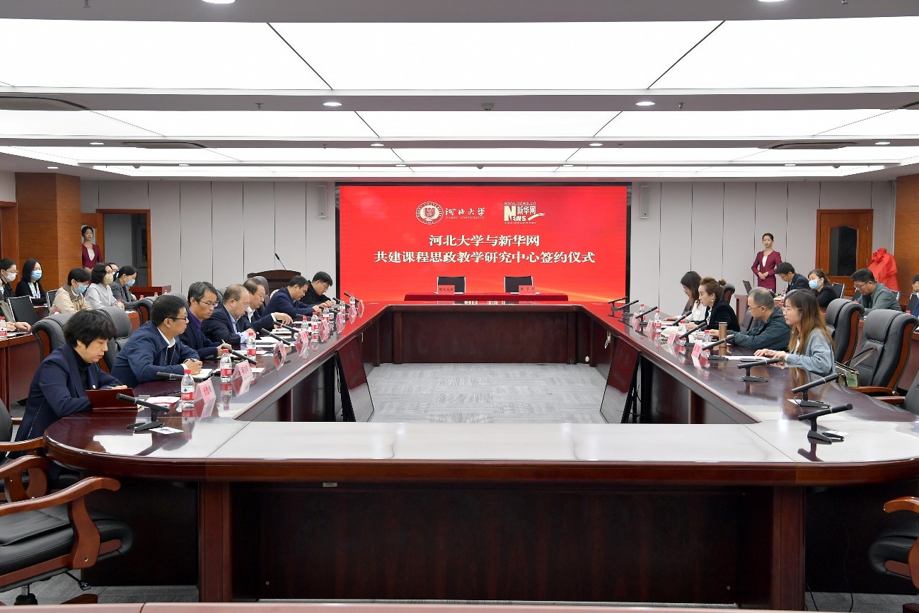 10月12日,河北大学与新华网共建课程思政教学研究中心签约和揭牌仪式在我校举行。校党委副书记杨立海、新华网教育事业中心总监徐晶出席,教务处处长张锋主持会议。