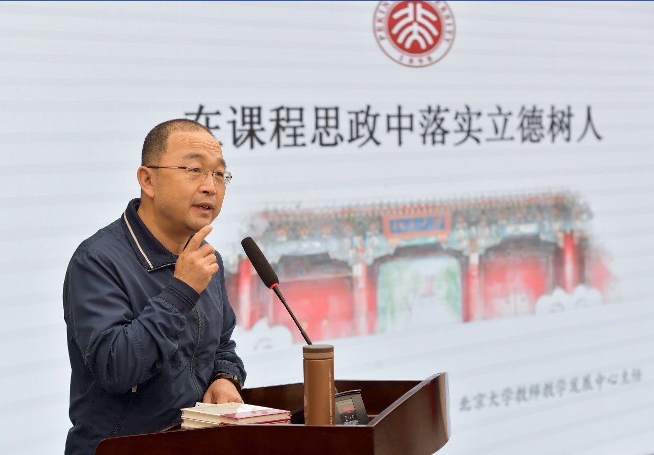 仪式结束后,北京大学教师教学发展中心主任孙华教授作了题为“在课程思政中落实立德树人”的专题报告。报告从“让教师理解课程思政是落实立德树人的战略举措”“在专业教学中总结、提升和凝练课程思政经验”“在教学设计中通过学生参与让课程思政入脑、入心”三个方面进行了深入分析,给大家上了一堂生动的示范课。