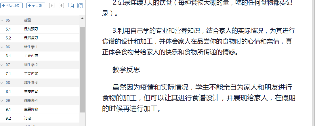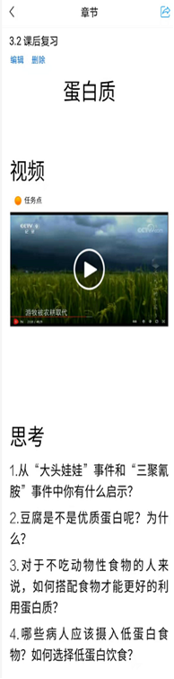 5.课程教学内容中新增了与营养、健康相关的社会热点问题和经典案例分析等,并充分挖掘课程的思政元素。总体上以政治认同、国家意识、文化自信、人文精神、职业素养为重点内容,来整体规划和分层设计课程的教育、教学内容。