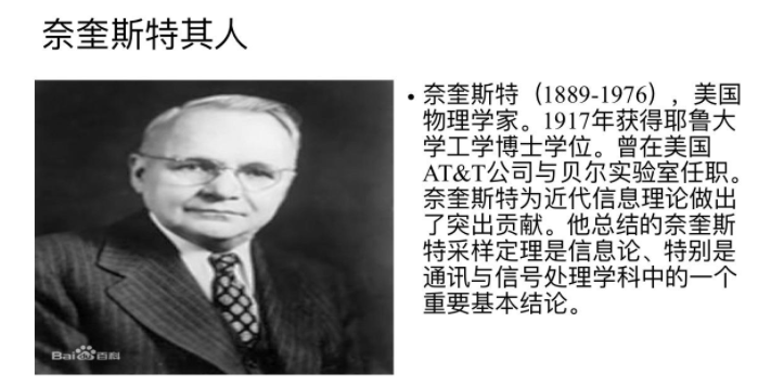 思政要素:讲解采样定理时引入奈奎斯特的人文知识,奈奎斯特是美国物理学家,1917 年获得耶鲁大学博士学位,曾在贝尔实验室任职,引导学生在人生的关键时期,要夯实理论基础,才能在以后人生道路上越走越好,越走越远。