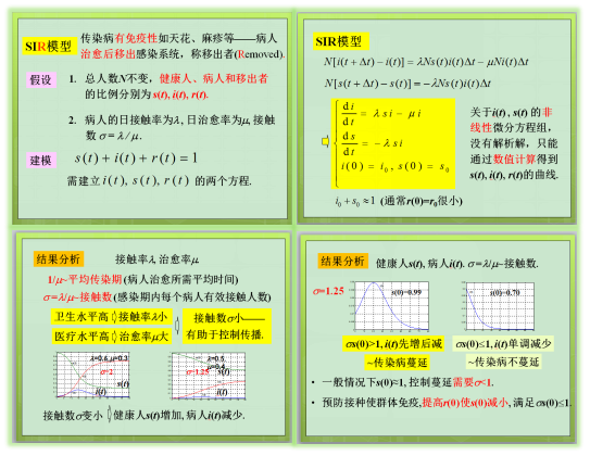 在本课程中,不从医学角度分析各种传染病的特殊机理,而是按照传播规律建立微分方程模型,用数学方法描述传染病的传播过程,分析感染规律,探索抑制传染病蔓延的手段和措施。