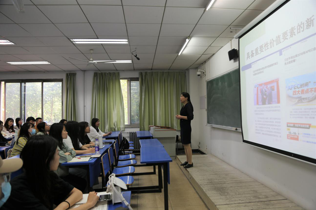课程负责人彭焕萍教授向学生解析热点时政新闻