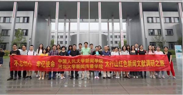 2019年8月,组织阜平、平山、涉县、雄安新区四地太行山红色新闻文献调查暨文化调研采写实践活动,课程负责人彭焕萍作为带队教师,致力于在文化调研、采写实践中对学生进行马克思主义新闻观教育,带领学生追寻红色新闻足迹。