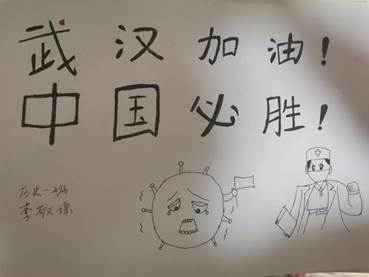 虽然宅家不能出门,但历史一班的同学们仍然心系武汉,心系国家。积极参加班级学院活动,具有很强的荣誉感以及集体意识,最后达成一致。全班以集体的名义,为武汉加油!孤木不成林,九州共一心。在现今的疫情下,希望每一个人都能平安!