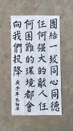 在此次疫情期间,响应国家的号召,做好居家隔离。少出门,不聚集,不为国家添麻烦。不信谣,不传谣,相信国家相信党。同时也增加了对生命的敬畏和对责任的理解。了解这次活动之后,我也想为抗击疫情的人们加油鼓劲贡献自己微薄的力量。