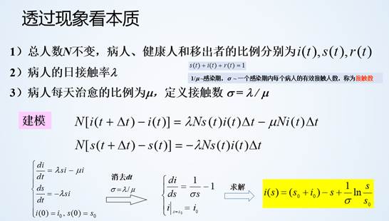基于以上四条假设,可建立如下微分方程组(SIR模型):