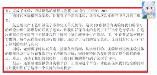 在《氯乙酸生产工艺3D虚拟仿真实验》实施过程,以“立德树人”为根本宗旨,坚持知识目标与育人目标相辅相成,确保“课程承载思政,思政寓于课程”。做到了政治性与学理性、理论性与实践性、灌输性与启发性、显性教育与隐性教育四个统一。