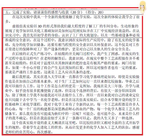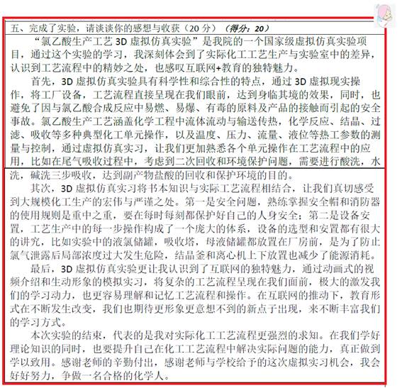 《氯乙酸生产工艺3D虚拟仿真实验》为虚拟仿真实验类国家级一流本科课程。该课程不但可以通过综合运用基础化学、化学工程基础等知识培养学生解决实际问题的能力。同时,化工前辈的创业精神、理论联系实际崇尚科学的案例、绿色环保的发展理念、过程优化与持续发展的意识等一系列丰富的思政素材可以助力学生工程素养及正确的人生观、价值观的培养。