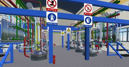 图3《氯乙酸生产工艺3D虚拟仿真实验》学习场景