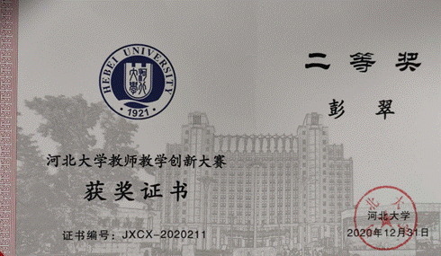 经过以上一系列改革,学生的知识转化能力得到了明显的提升,期末的考核平均分也在83分以上。三年申报两次教学评优,学生评教都在98分左右。在素质拓展方面发表论文10余篇,完成大创课题、挑战杯、调研河北等项目近10项。帮助学生推免保研到中国人民大学、山东大学、华中科技大学、中央民族大学等,捷报频传。在我的学术团队中拿到国家奖学金和一等奖学金的学生接二连三。基于以上课程思政元素的创新性融入,主讲教师在河北大学首届教学创新大赛中也获得了个人组二等奖。相关佐证如下所示: