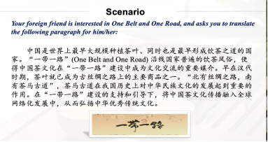 驱动环节:教师布置关于“一带一路”与茶文化的翻译任务,并解释翻译场景。