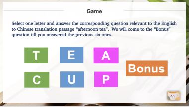 驱动环节:1)学生通过游戏环节回顾英译汉练习中的难句翻译及英国茶文化知识点。