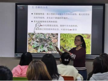 绝大多数学生对苔藓其实并了解,而且教材图片黑白不形象,学生无法想象其自然状态;将实验室培养的苔类叶状体发放给学生进行分组观察,使其对苔藓有更感性的认识。