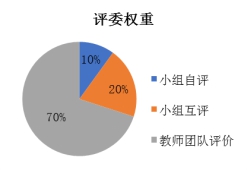 考核采用学生自评,小组互评和教师团队评价相结合的方式进行。根据学生任务完成情况、任务成果文案、成果汇报情况、团队协作情况给出相应平时成绩,期末成绩等于每次平时成绩的加权平均值,权重分配如图9。