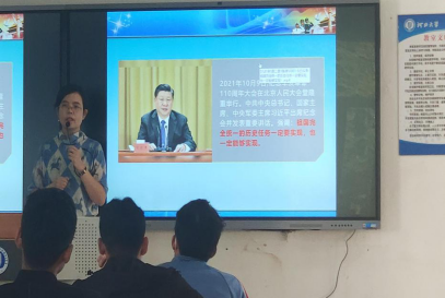 (2)讲授中印边界争端时,视频播放今年国庆节驻防加勒万河谷解放军战士升国旗的新闻。通过这一环节,让学生们能够从边防战士身上汲取保家卫国力量,互动中学生们也纷纷表达出对边防战士的崇敬之情、感恩之情。