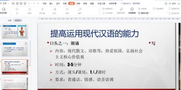 (1)课堂讲解:对汉语的地位、朗诵的基本要求等内容,使用多媒体课件,采集丰富的资源,进行讲解。