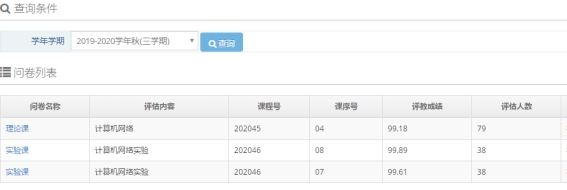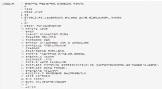 由于《网络安全概论》课程的学生评价结果教务系统里未发布,故截取采用同样思政教育方法的同一教师讲授《计算机网络》学生评价结果如图7和图8所示。