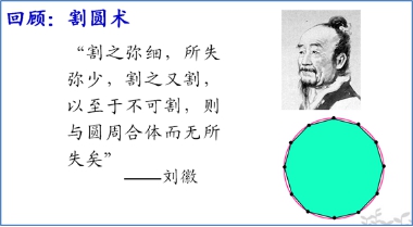 [思政元素]通过回顾我国古代数学家刘徽的“割圆术”,增强学生的民族自豪感和文化自信。