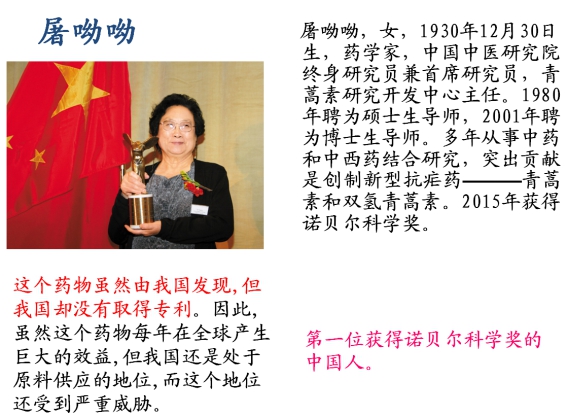 图2. 屠呦呦成功提取青蒿素并获得诺贝尔医学奖