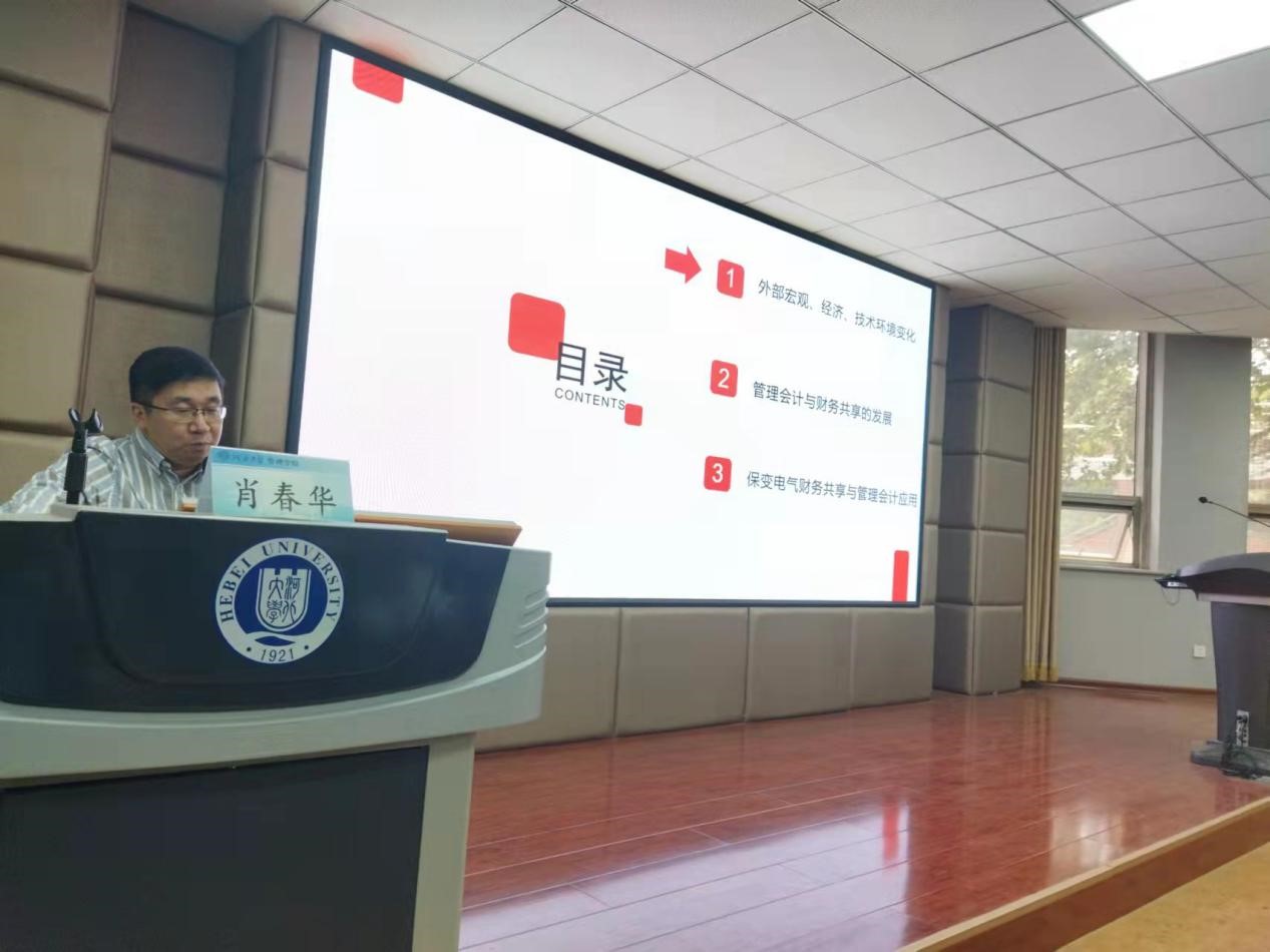 9月25日下午,保定天威保变电气股份有限公司财务部长肖春华应邀来到我校七一路校区,为我院师生作题为《保变电气基于财务共享的管理会计应用》的报告。