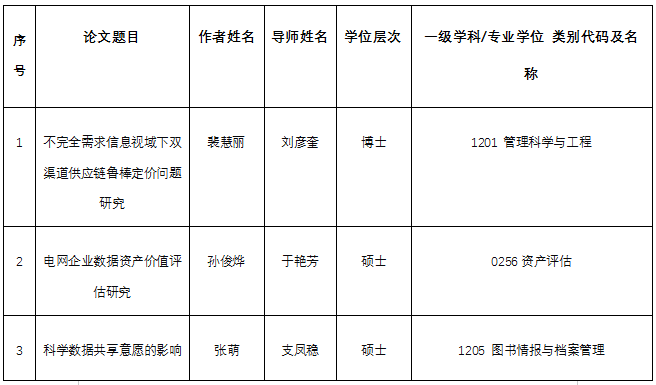 近日,河北省教育厅印发了《关于公布2022/2023学年度河北省优秀博士、硕士学位论文评选结果的通知》(冀教研函〔2024〕23号)。经学校遴选推荐、河北省学位委员会办公室组织专家评审等程序,管理学院1篇博士学位论文获评为河北省优秀博士学位论文, 2篇硕士学位论文获评为河北省优秀硕士学位论文(详见表格)。
