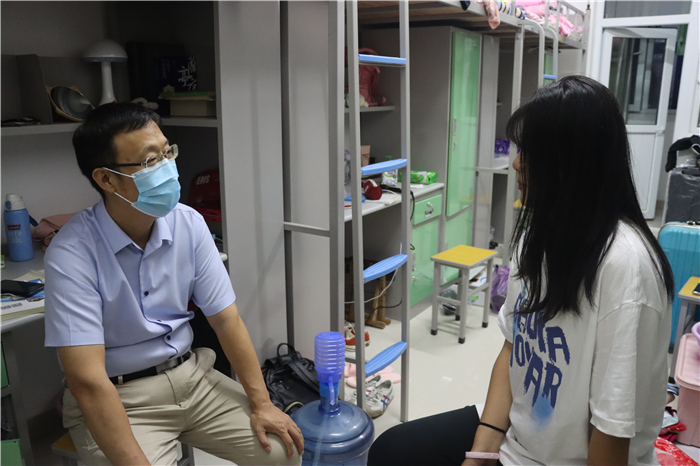 领导和辅导员们逐宿舍走访,亲切地询问同学们是否适应学校生活以及对所学专业的了解情况等。对一些离家较远的同学,领导和老师们仔细询问他们是否有不适应的地方,并鼓励同学们多走出宿舍熟悉校园环境。