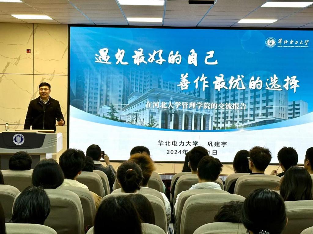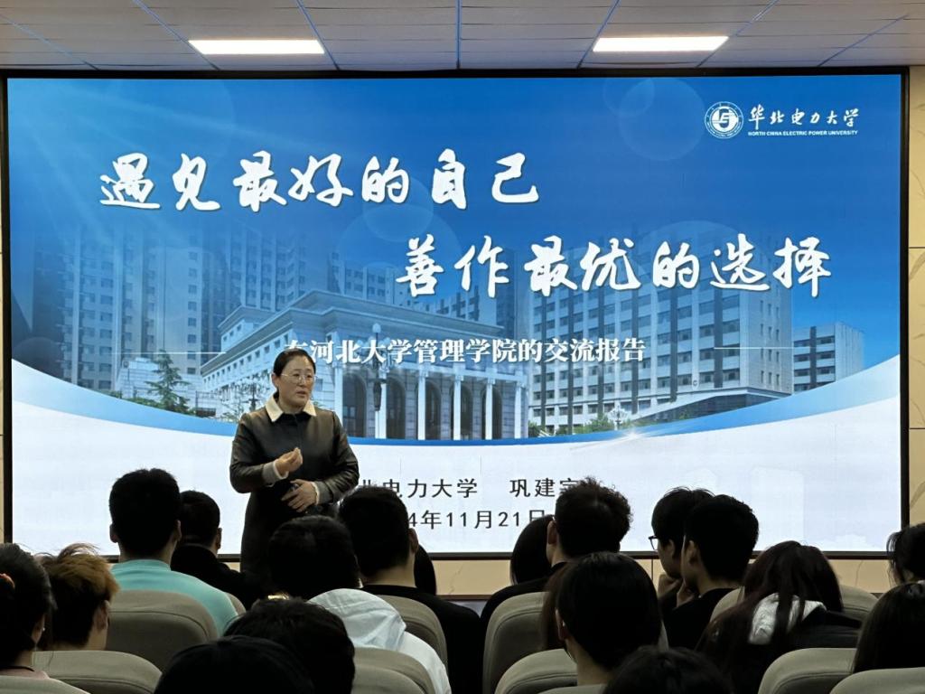 为进一步提升2024级学生的职业生涯发展意识,提前做好职业生涯规划。2024年11月21日,河北大学管理学院“锦绣前程”生涯发展指导报告会在七一路校区A2-208举办。学院特邀华北电力大学党委宣传部思想政治工作中心主任巩建宇为2024级学生作指导报告,报告会由管理学院党委副书记张丽主持。