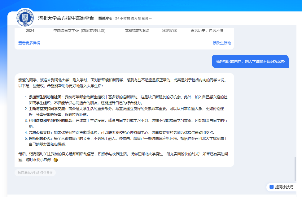【河北大学】DeepSeek版“智能招生问答系统”来啦!