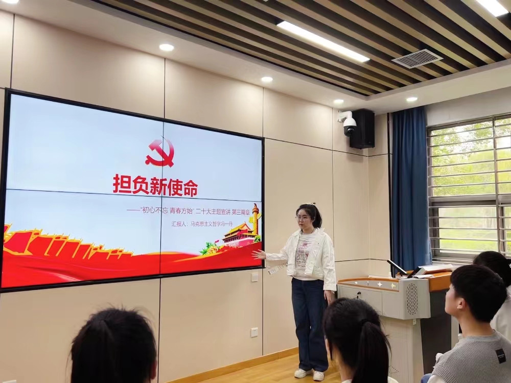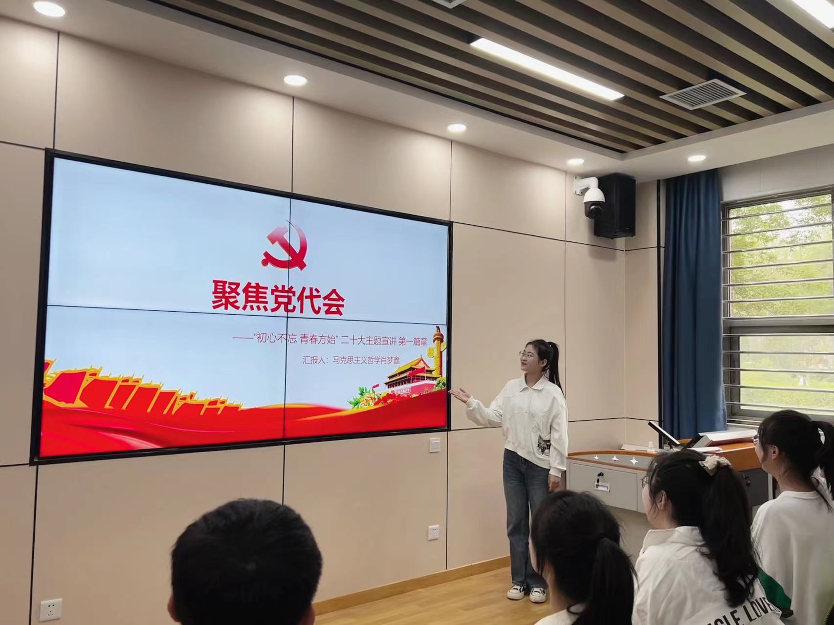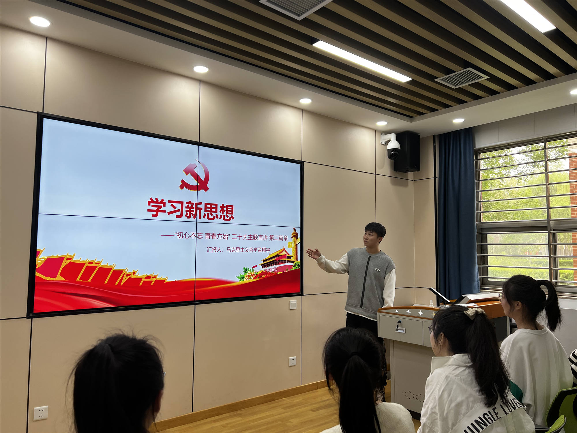 为深入学习贯彻党的二十大精神,4月16日下午,河北大学哲学与社会学院在B4-112专业实验室召开 “不忘初心 青春方始”为主题的党的二十大精神宣讲会。此次宣讲会由学院马克思主义哲学专业研究生团队六名同学担任主讲,学院党委书记张露红、师生代表50余人参加了本次活动。