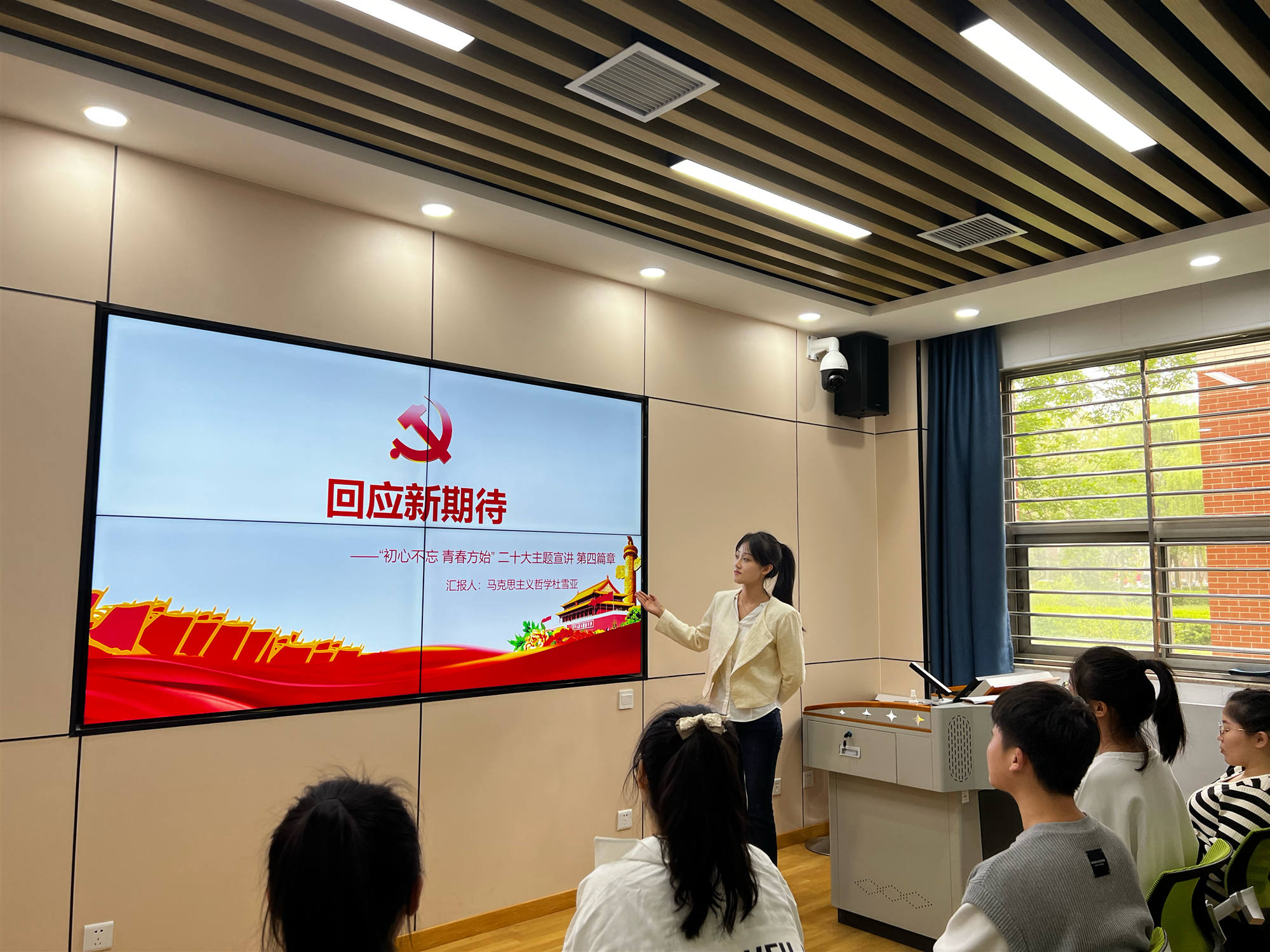 宣讲团六名同学紧紧围绕党的二十大报告,从“聚焦党代会、学习新思想、担负新使命、回应新期待、共赴新未来、争做新青年”六个方面,对报告进行深入解读。六位同学饱含热情的宣讲主题鲜明、内容丰富、深入浅出、注重互动、贴近实际,用同学们喜闻乐见的形式,让党的二十大精神的学习在学院“动”起来、“潮”起来、“活”起来。